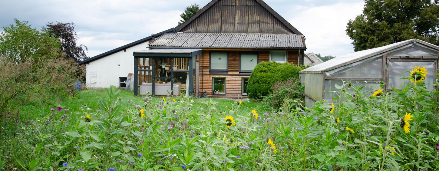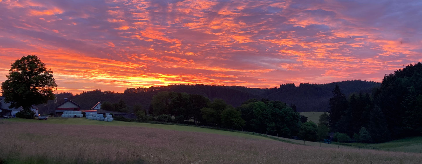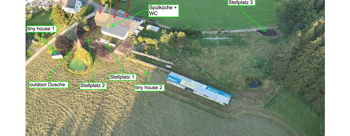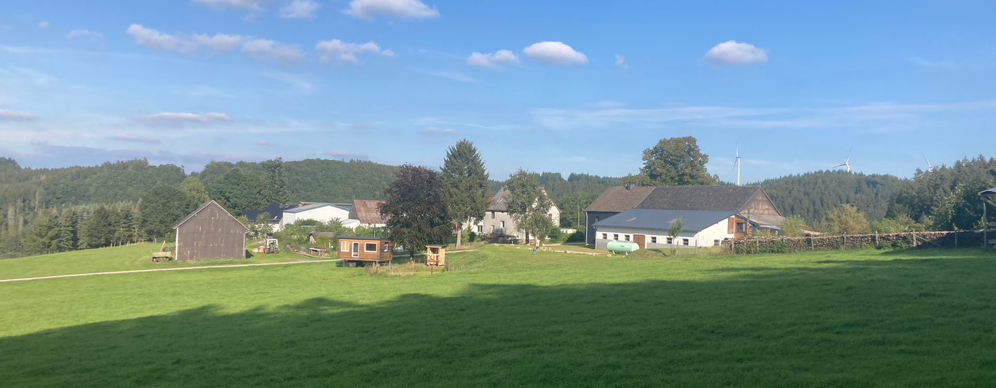 Im Jahre 2021 haben wir den Hof von Emanuels Großvater übernommen. Unsere Kinder sind die 6. Generation der Familie Dümmer, die um 1900 hier an diesem Ort begann. Zuletzt wurde der Hof landwirtschaftlich als Grünlandbewirtschaftung mit ca. 14 Kühen geführt, wobei er die letzten 25 Jahre außer Betrieb war. Im November 2025 wurde der Flächennutzungsplan geändert als Vorbereitung auf die Baugenehmigung für unser bevorstehendes Projekt: Aus dem Bauernhaus mit Scheune und Stall sollen bis zu drei Wohneinheiten entstehen (Mehrgenerationenhaus), sowie ein zentraler Gemeinschaftstrakt bestehend aus: Unverpackt Laden, Gemeinschaftsküche mit Aufenthaltsraum und einem Seminarraum. Im Außenbereich (ca. 4Hektar) soll der Wasserkreislauf mithilfe von Wassererntegräben (swales) und Teichen harmonisiert werden und Bodenaufbau- sowie Nahrungsmittelsysteme Waldgartenstreifen (food forests) angelegt werden. In diese Zonen sollen bis zu acht tiny houses installiert werden, welche als Unterkunft für Seminarteilnehmer bzw. Gäste dienen sollen mit besonderem Augenmerk darauf, den Wohnraum so in die Naturlandschaft zu integrieren, dass nicht nur eine Unterkunft, sondern vielmehr ein Ort der Rückbesinnung und Erholung geschaffen wird. Wir setzen ca. 20 Jahre für die Umsetzung dieses Projektes an, können jedoch sehr wahrscheinlich ab 2026 die ersten beiden tiny houses und kleinere Seminare anbieten. In 2024 haben wir drei Wohnmobilstellplätze angelegt, die seitdem gut besucht werden. Die Vision ist, dass dieser Standort, einer von mehreren Netzwerkstandorten auf regionaler und überregionaler Ebene sein wird, der es sich zum Ziel macht, ganzheitlich funktionierende Ökosysteme zu gestalten mit einem hohen Grad der Selbstversorgung in den lebensnotwendigen Aspekten (Nahrung und Medizin, sauberes Wasser, Energie, Wohnraum, Gemeinschaft). Dabei ist es uns wichtig, mit lokalen Partnern zusammenzuarbeiten um ein "Produktions-"Netzwerk vor Ort zu schaffen.